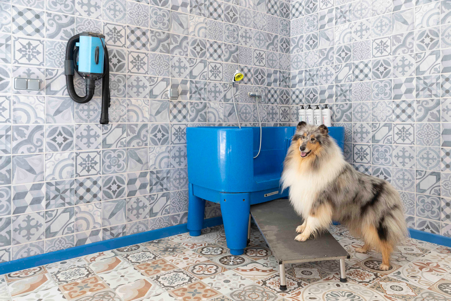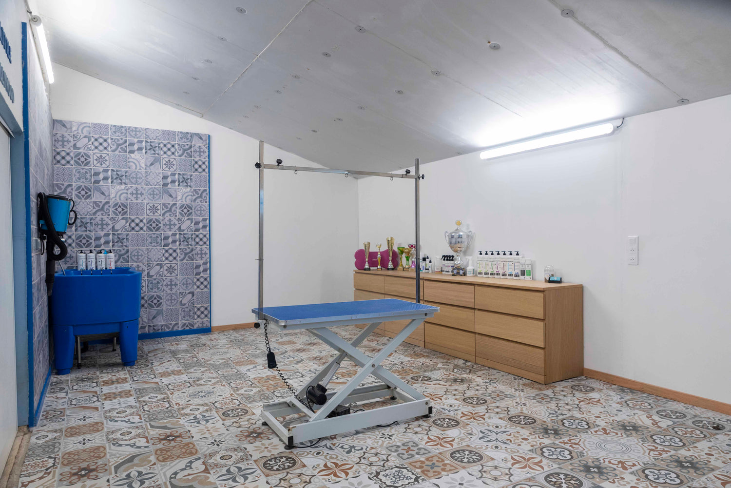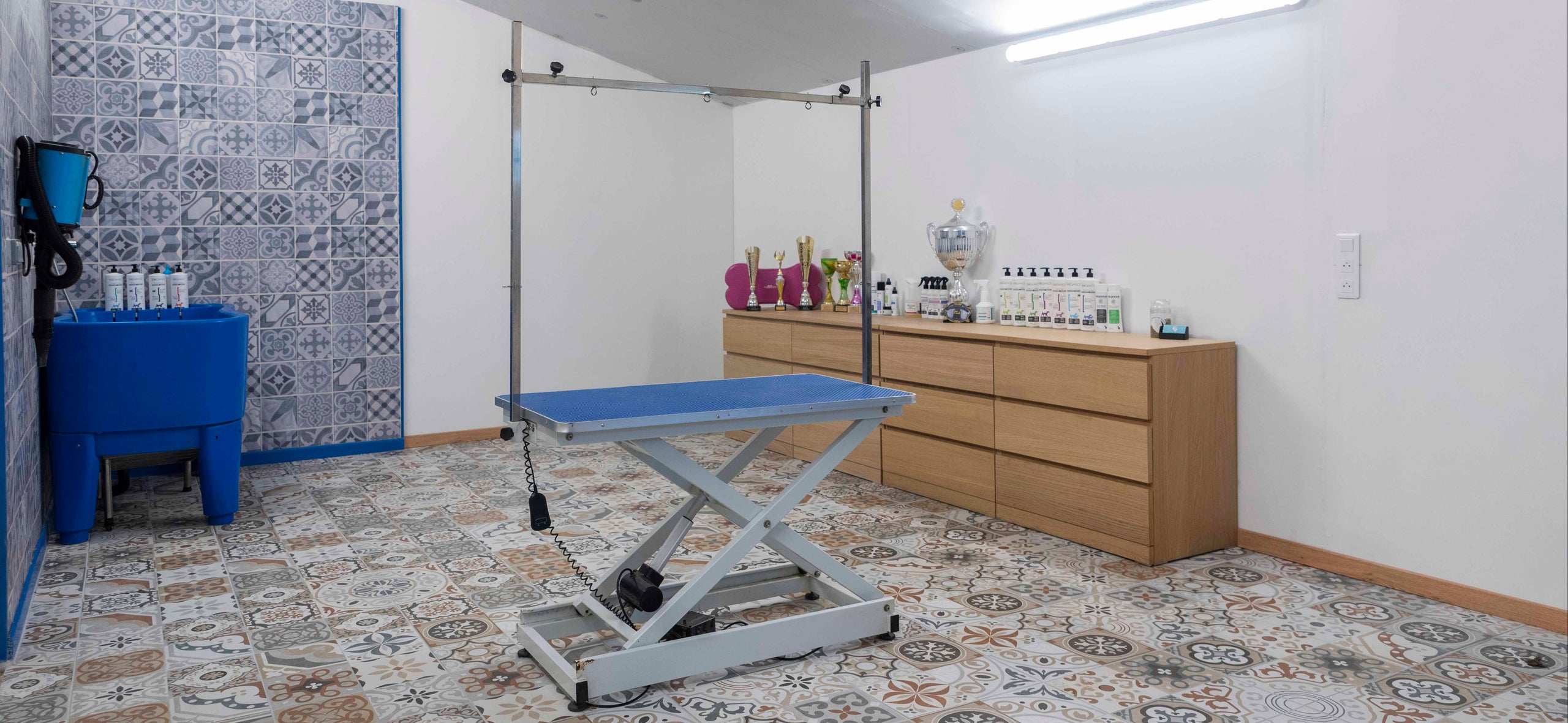 Equipé de tout le matériel de toilettage professionnel pour chiens.
