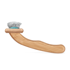 Brosse avec un manche en bambou ergonomique pour une manipulation facile. Brosse pour chats avec système Air Cushion intégré, qui permet aux dents métalliques de couvrir une plus grande surface tout en protégeant l'intégrité des poils. Dents longues et flexibles pour protéger la peau, évitant les éraflures et les blessures superficielles. Idéale pour les petites races de chiens et les chats.