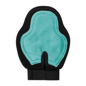 Gant rond en tissu synthétique respirant, dont une face est munie d'un tissu qui retient les poils et l'autre de picots en caoutchouc pour enlever les poils de mue qui s'accumulent sur le pelage. Ajustable au poignet grâce à une fermeture velcro et une sangle intérieure pour un meilleur maintien