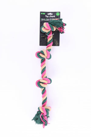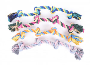 Offrez à votre chien des heures de jeu interactif et de mastication saine avec notre lot de 4 jouets en corde multicolores ! Conçus en coton tressé résistant, ces jouets à nœuds sont parfaits pour satisfaire l’instinct naturel de mâcher tout en renforçant les dents et les gencives.