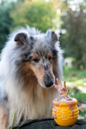 Offrez à votre chien une expérience ludique et gourmande avec notre jouet "Pot de Miel"  ultra résistant ! Parfait pour être rempli de friandises, de beurre de cacahuète ou de pâtés pour chien, ce pot stimule l’instinct naturel de mastication, de léchage et d’exploration.