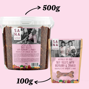 Les filets de booeuf sont une délicatesse pour votre chien, composée de viande de boeuft pure et de haute qualité. Ils sont fabriqués sans additifs tels que le maïs, le blé, le soja, les colorants, les conservateurs, les farines de viande ou d'autres agents de remplissage dans notre propre atelier et sont délicatement séchés à l'air