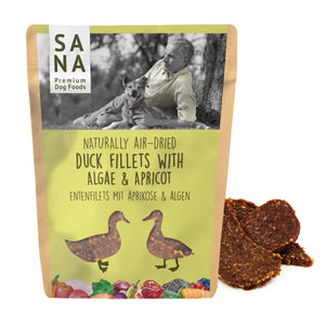 Les filets de canard sont une délicatesse pour votre chien, composée de viande de canard pure et de haute qualité. Ils sont fabriqués sans additifs tels que le maïs, le blé, le soja, les colorants, les conservateurs, les farines de viande ou d'autres agents de remplissage dans notre propre atelier et sont délicatement séchés à l'air