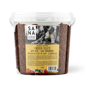 Les filets de poulet sont une délicatesse pour votre chien, composée de viande de poulet pure et de haute qualité. Ils sont fabriqués sans additifs tels que le maïs, le blé, le soja, les colorants, les conservateurs, les farines de viande ou d'autres agents de remplissage dans notre propre atelier et sont délicatement séchés à l'air