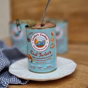 Dinde (muscle, cœur, foie, gésiers) (85 %), patate douce (4 %), pois, graines de chia, huile de noix de coco et flocons (3 %), curcuma, coquilles d'œufs moulues, algues marines