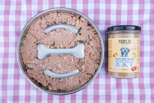 Fidelis recommande une transition alimentaire immédiate. Omettre un repas (de préférence le soir) et commencer directement avec notre nourriture au prochain repas. Pendant les 14 premiers jours, nourrir une seule variété pour que l'estomac du chien s'habitue à la nourriture. Après deux semaines, nous recommandons de nourrir différentes saveurs de manière alternée.