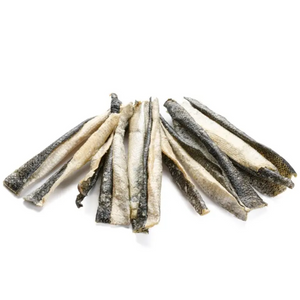 La peau de saumon est une friandise naturelle pour chiens, composée à 100 % de peau de saumon séchée. Grâce à un séchage doux, des nutriments précieux tels que les acides gras oméga-3 et oméga-6 sont préservés, pouvant contribuer au soutien de la peau, du pelage et du système immunitaire. Sa consistance tenace mais bien mâchable offre à votre chien un plaisir de mastication de durée moyenne et peut également contribuer à l'hygiène dentaire en favorisant la musculature masticatoire et en réduisant la plaque dentaire. La peau de saumon est exempte d'additifs artificiels, de conservateurs et de céréales, ce qui la rend adaptée aux chiens ayant un estomac sensible ou des allergies.